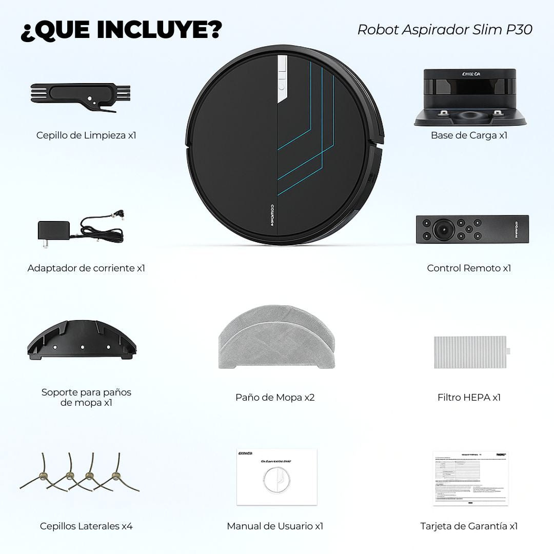 Gracias a su navegación inteligente por giroscopio, el P30 limpia de forma ordenada y sin pasar dos veces por el mismo lugar, cubriendo más área en menos tiempo.